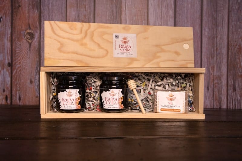 Cada caixa prepárase unha a unha no noso obrador, con produtos que saen directamente dos nosos colmenares. É un detalle perfecto para amigos, familiares ou como agasallo corporativo que destaca pola súa autenticidade e orixe galega. Un pedaciño de Ourense nunha caixiña de madeira.