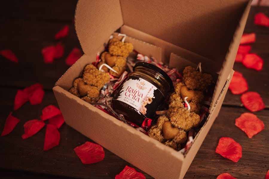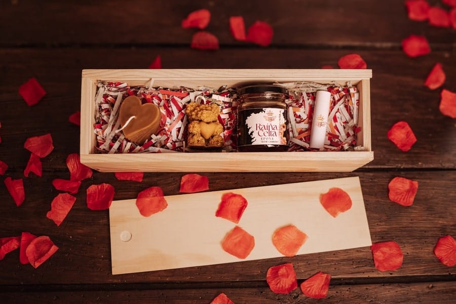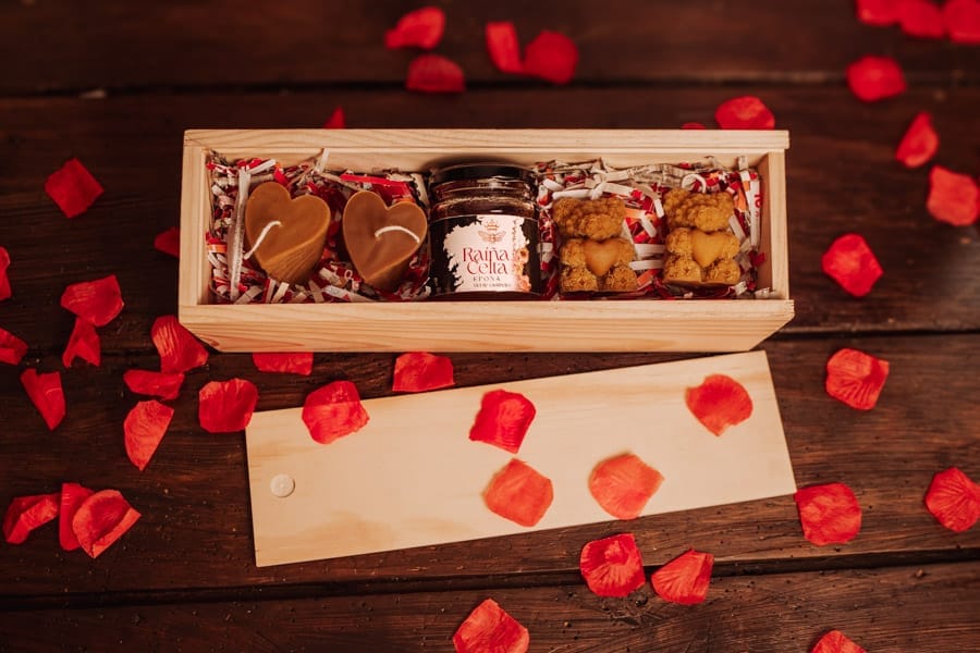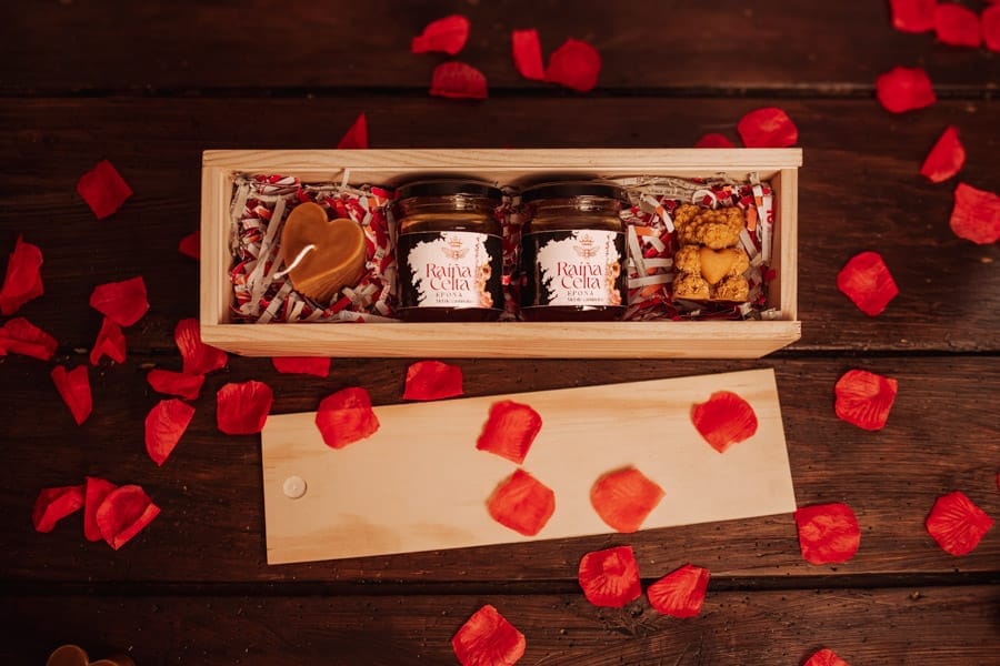 💛 Regala produto local, autenticidade e un chisquiño de amor coas caixas regalo para San Valentín de Raíña Celta. Hai detalles que falan por si sós.